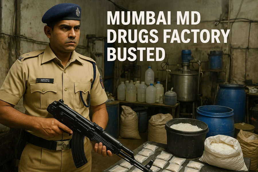 मुंबई: महाराष्ट्र की राजधानी मुंबई में पुलिस ने एक बड़ी कार्रवाई करते हुए एमडी ड्रग्स बनाने वाली फैक्ट्री का भंडाफोड़ किया है। यह कार्रवाई मुंबई पुलिस की एंटी नारकोटिक्स सेल और तिलक नगर पुलिस की संयुक्त टीम ने की। पुलिस ने वसई के पेल्हर स्थित रशीद कंपाउंड में चल रही इस अवैध फैक्ट्री से लगभग 7 किलो एमडी ड्रग्स और करोड़ों रुपए के केमिकल और कच्चा माल बरामद किया है। जब्त की गई सामग्री की कीमत शुरुआती अनुमान के मुताबिक 10 करोड़ रुपये से अधिक बताई जा रही है।