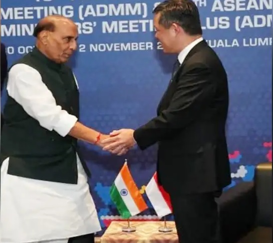 रक्षा मंत्री राजनाथ सिंह ने मलेशिया के कुआलालंपुर में आयोजित 12वें आसियान रक्षा मंत्रियों की बैठक प्लस (ADMM-Plus) के दौरान सिंगापुर, न्यूज़ीलैंड, दक्षिण कोरिया और वियतनाम के रक्षा मंत्रियों से मुलाकात की। इस दौरान भारत ने हिंद-प्रशांत क्षेत्र में स्थिरता और रक्षा सहयोग को मजबूत करने की अपनी प्रतिबद्धता दोहराई।