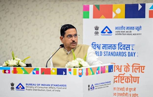 केंद्रीय उपभोक्ता कार्य, खाद्य एवं सार्वजनिक वितरण मंत्री प्रह्लाद जोशी ने मंगलवार को विश्व मानक दिवस 2025 के अवसर पर कहा कि हमें एक ऐसे विश्व के निर्माण के लिए अपनी प्रतिबद्धता दिखानी चाहिए, जहां साझा मानक सभी के लिए इनोवेशन, विश्वास और और सस्टेनेबल ग्रोथ को बढ़ावा दें।